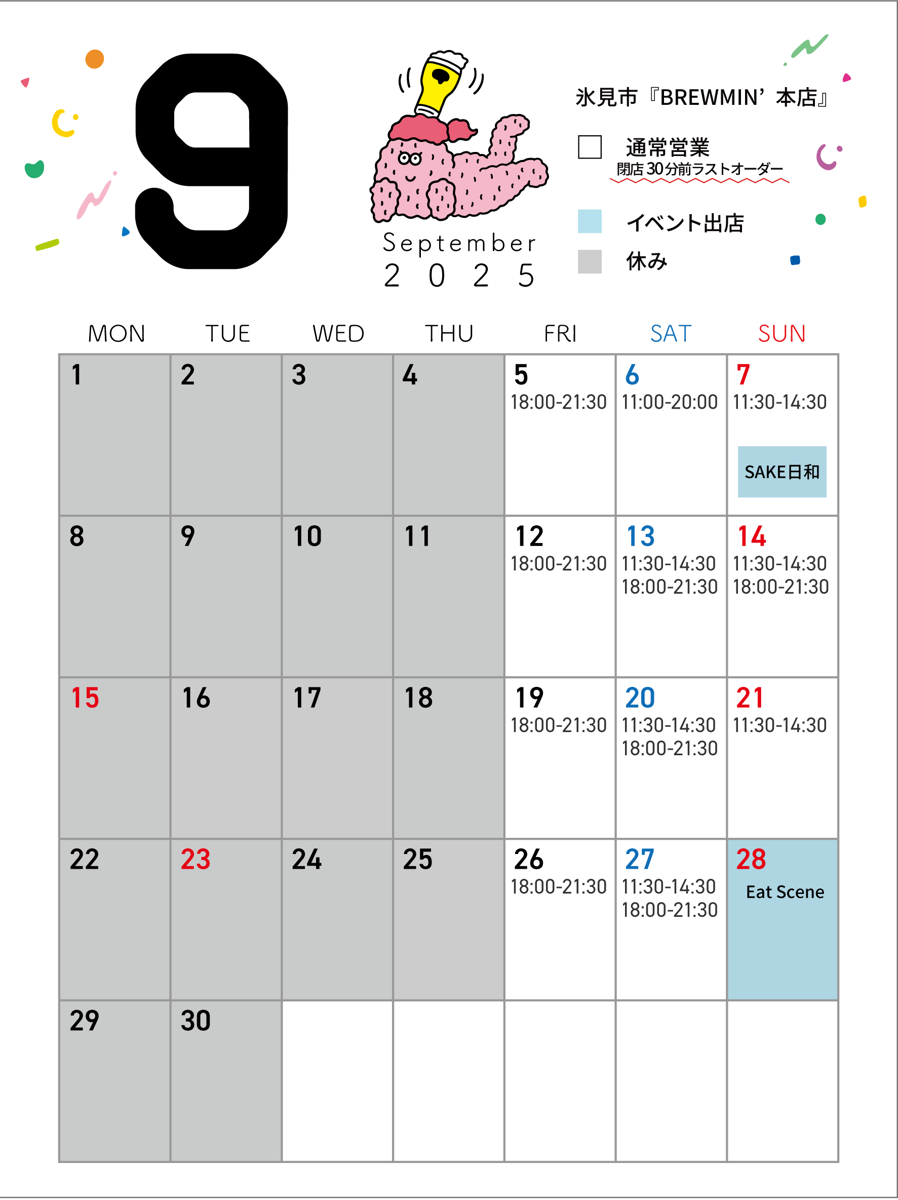 >>9月の営業カレンダー