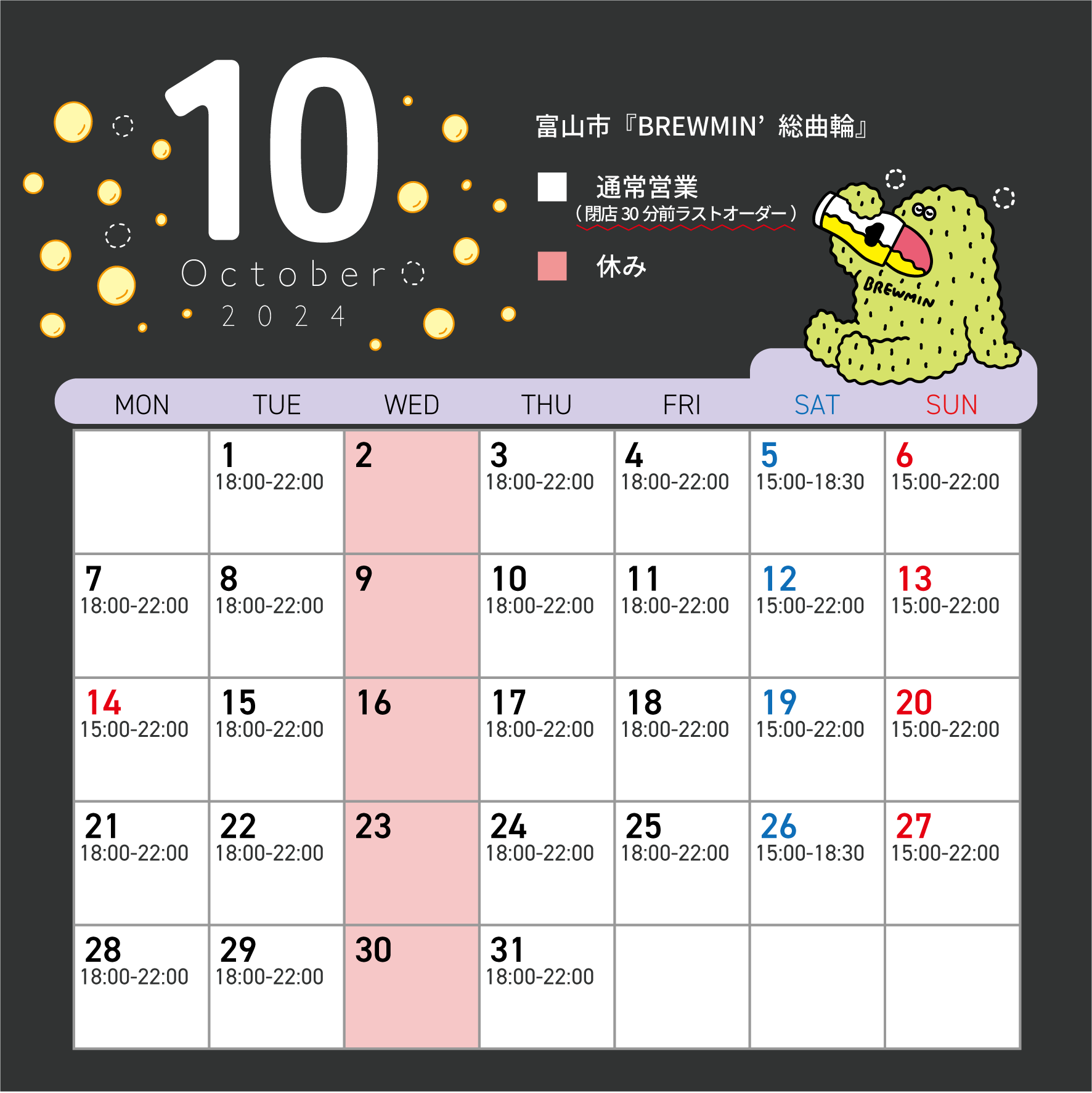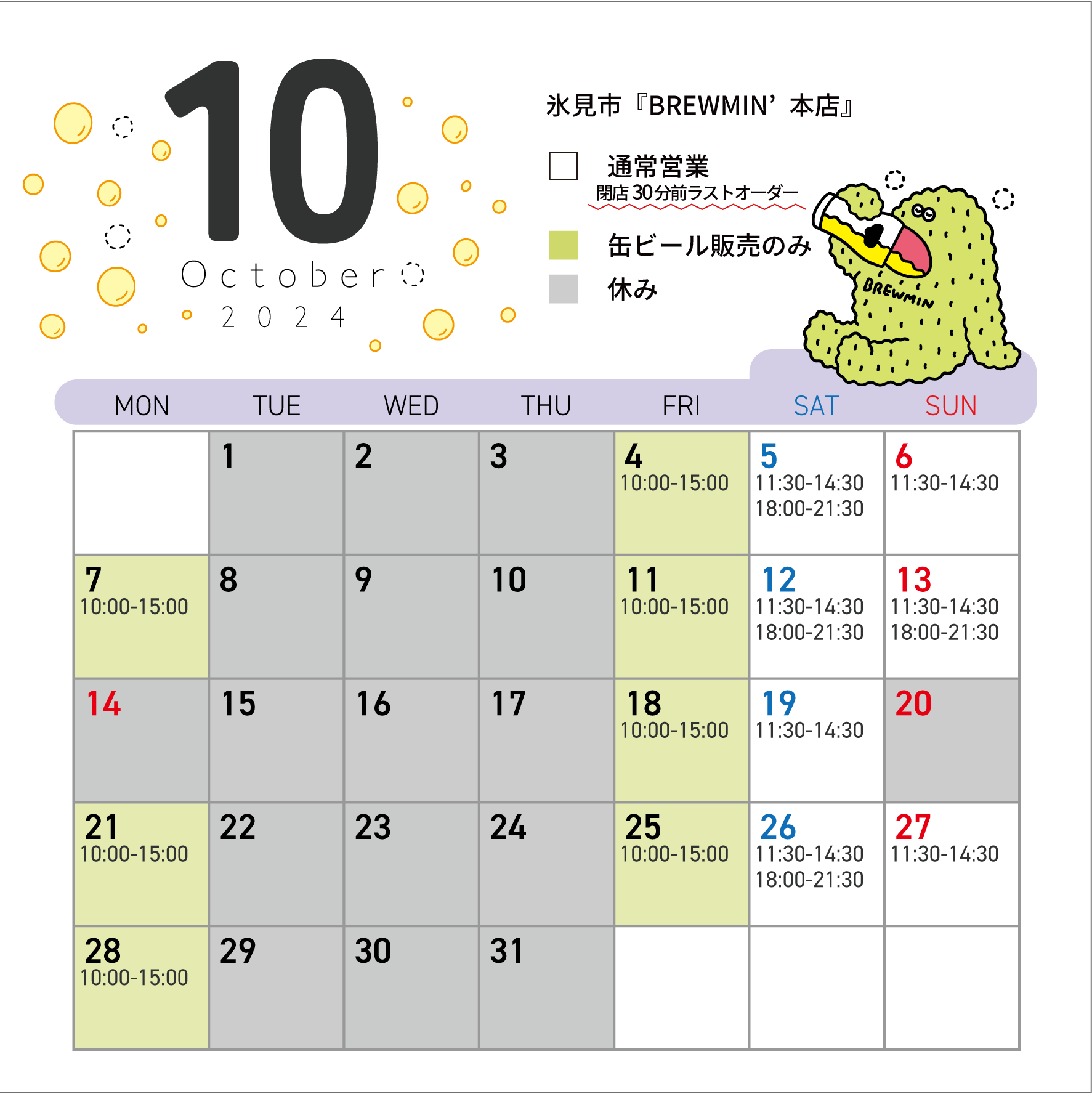 >>10月の営業カレンダー