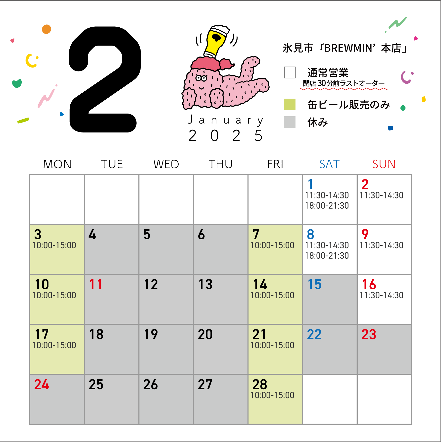 >>2月の営業カレンダー