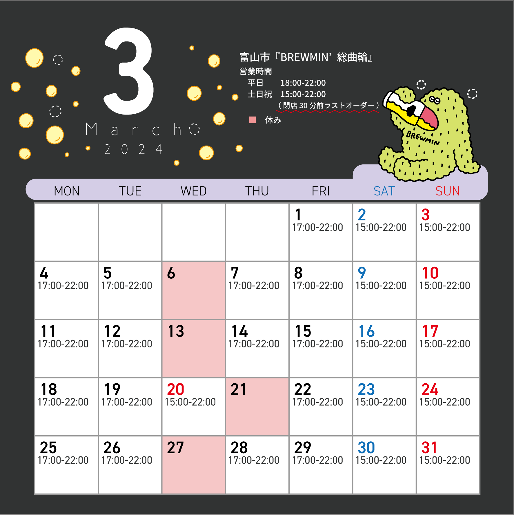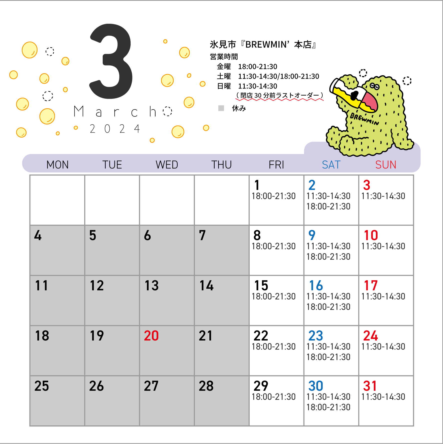 >>3月の営業カレンダー