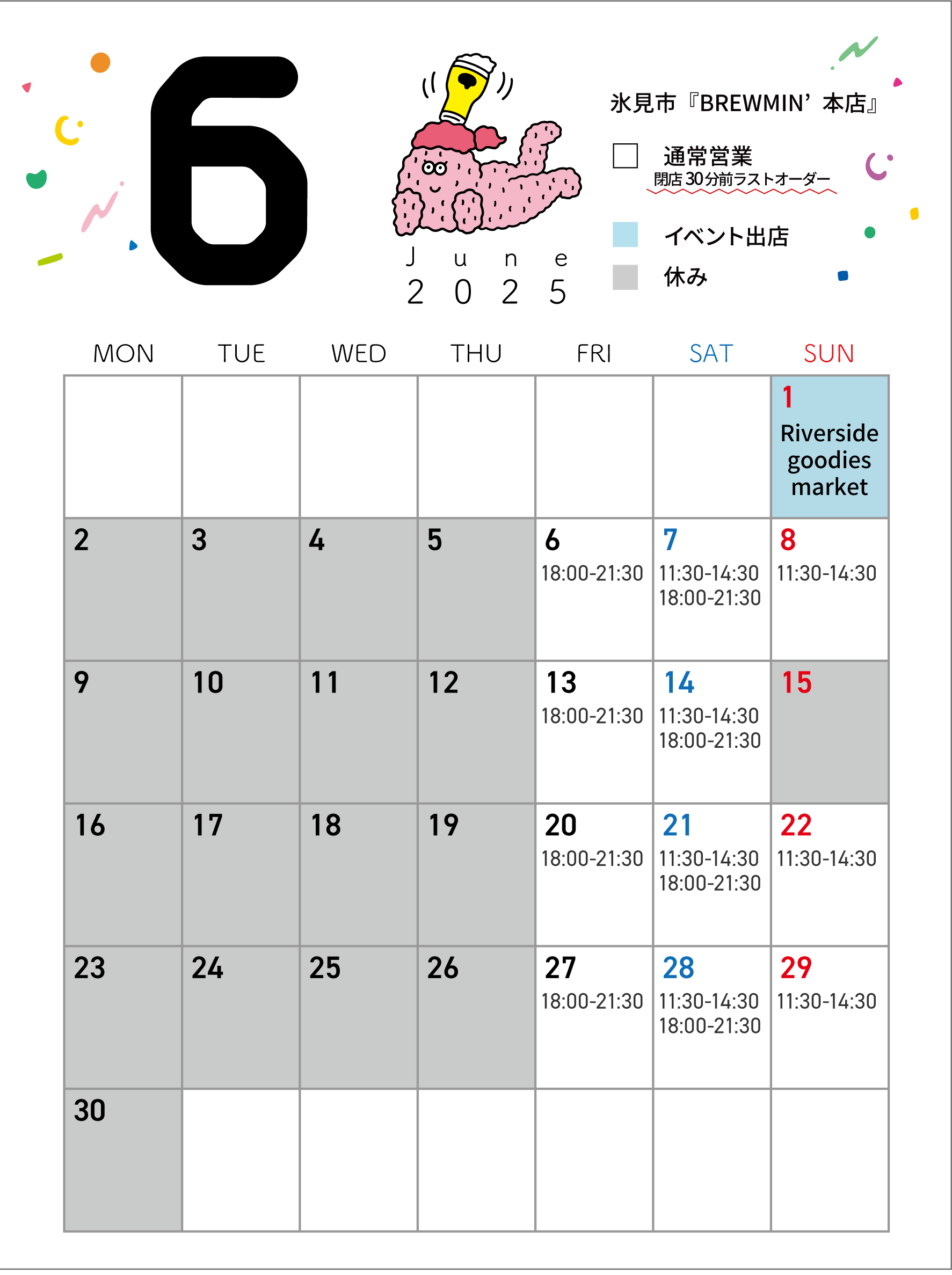 >>6月の営業カレンダー