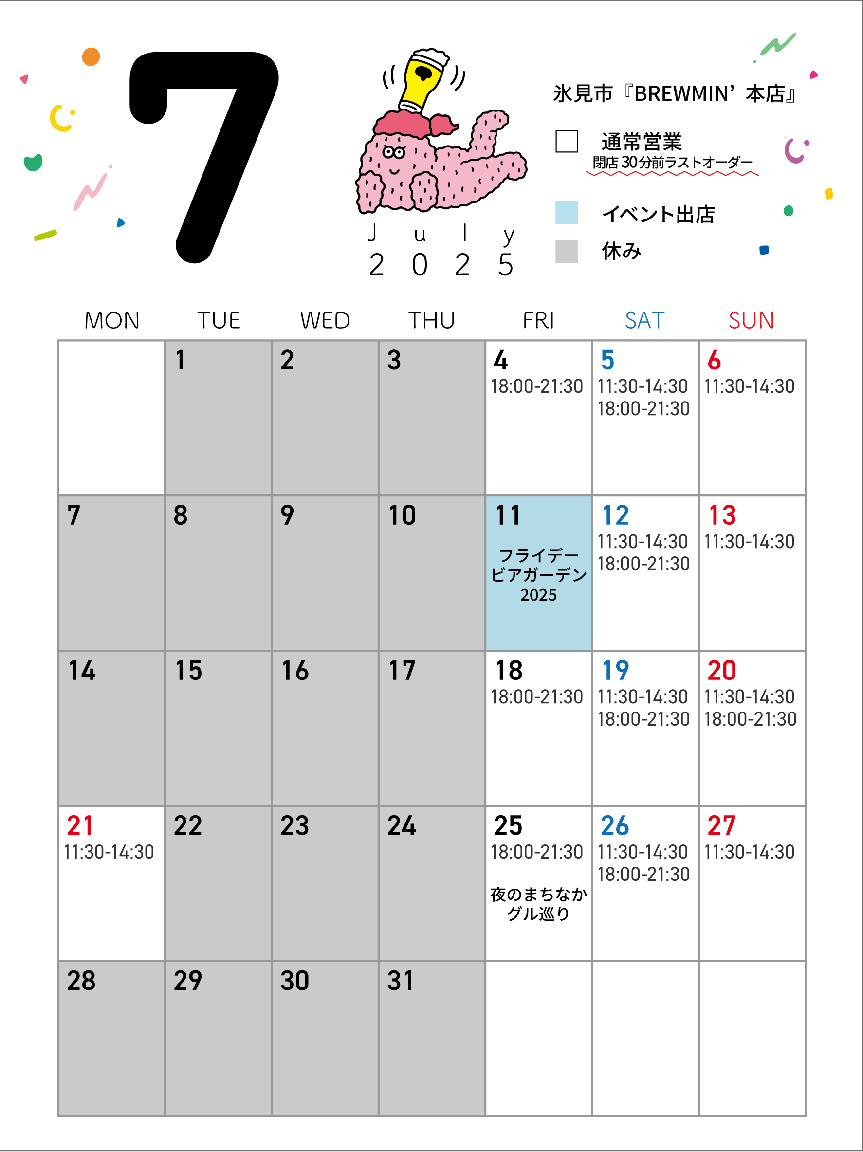 >>7月の営業カレンダー